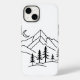 Add a touch of minimalistic elegance to your phone with this monochrome phone case featuring a tranquil mountain range surrounded by tall, graceful pine trees. The crescent moon detail adds a serene and celestial touch to the design. Perfect for those who love sleek and clean aesthetics with a nature-inspired theme. This lightweight yet durable case provides excellent protection against scratches and drops, making it both functional and stylish. Ideal for outdoor enthusiasts or anyone looking for a simple yet striking phone accessory.
