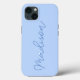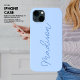 Crie sua própria capas de iphone, mas minimalista, e proteja seu telefone com estilo! Este caso apresenta uma fonte de script de estilo manuscrito na moda grande em tom azul em um plano de fundo azul mais claro. Selecione entre um estilo fino ou duro de capas de iphone e seu iPhone modelo facilmente nas caixas suspensas abaixo.