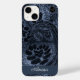 iPhone 14 Pro Plus Max e outros. Arte tecnológica digital moderna com a paisagem azul de denim em espirais com conjuntos de bolhas ao longo do padrão. Este conjunto de design está disponível em decoração doméstica, roupas e acessórios. Ajustado muitas opções de telefone iPhone e Samsung nos menus suspensos. Escolha seu telefone escolhido e veja se o design ajustado está bem.