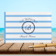 Personalize este Monograma Beach House Guest Book com seu nome familiar e registre as memórias de excelentes de Amigos e Familiares que visitam sua casa no oceano. As faixas brancas e azuis, com Marinho azul, serão um suplemento chic para sua casa na praia. Perto como um Presente de Aquecimento Doméstico em Praia.