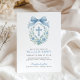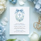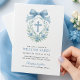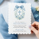Este convite clássico de batismo ao estilo monograma apresenta uma coroa floral, cruz azul e layout de eterno. Excelente para cerimônias formais de bebês.