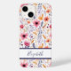 Lindo padrão de flores silvestres nas seguintes cores: rosa, roxo, laranja, coral e bege. Monograma desta capa de telefone com o seu nome ou iniciais.