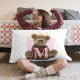 capas bonito e vibrantes de travesseiro monograma com ursos peludos fofos. Um travesseiro adorável para o quarto ou berçário do seu filho.