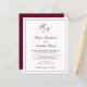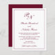 O convite de casamento do estilo tradicional, com um design simples e clássico com seu monograma inicial e seus nomes em um dentro de caligrafia elegante de uma fronteira fina. Todos os elementos de design estão em burgundy sobre um fundo branco e podem ser alterados na ferramenta de edição de design. Esta design de classe é perfeita para um casamento formal.