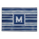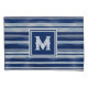 Toneladas frescas e brilhantes de azul e branco neste design striped com uma caixa de monograma para um solteiro inicial.