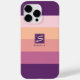Design de listras simples e coloridas com cores solares paleta gama e monograma. Púrpura de Pastel, pinças e cor de pêssego numa combinação suave. Monograma totalmente personalizável. Personalize alterando as iniciais e o nome ou substitua pelo seu logotipo.