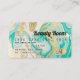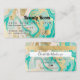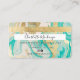 Um elegante e moderno, na moda, Cabelo de beleza e cartão de visita do estilo de cartão de crédito artístico de maquiagem, com uma tipografia de fontes moderna em um dourado cônico, agate de mármore turquesa e fundo de tendências de vidro metálico dourado. todo o texto é personalizável, adicione suas mídias sociais. Apresentando uma fita de ouro falsa. Adicione seu logotipo, seu monograma e código QR.