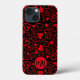 capa de telefone dia de os namorados com seu monograma. Corações vermelhos loucos e divertidos em preto