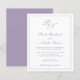 O convite de casamento do estilo tradicional, com um design simples e clássico com seu monograma inicial e seus nomes em um dentro de caligrafia elegante de uma fronteira fina. Todos os elementos de design estão em roxo empoeirado sobre um fundo branco e podem ser alterados na ferramenta de edição de design. Esta design de classe é perfeita para um casamento formal.