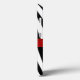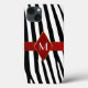 Capas de iphone de padrões de animais selvagens com padrão de zebra listrado preto e branco. Gráficos bonito de uma fita de cetim vermelha e uma placa de monograma de triângulo vermelho decoram o meio da caixa. Personalize o monograma branco de uma letra para este excelente. A maneira perfeita de proteger o seu telefone celular, e também de parecer na moda.