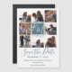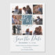 Casamento com monograma azul e folha de sábio, salvar a data, oito fotos, anúncio magnético de quadro em bloco com lindas folhas de cor d'água que circulam ao redor das iniciais modernas de roteiro no bloco central.
