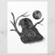 Trabalho de arte preto e branco de um falcão peregrino com lua de cheio e galhos de árvores. Use o modelo de texto para adicionar uma inicial ou um monograma à lua. ♡ Idyllfire