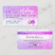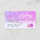 Um elegante cartão de visita do estilo de cartão de crédito de artista, na moda e Hair, com uma letra moderna, com uma letra de tipografia moderna num gradiente de cor roxa-rosa-púrpura-claro e fundo de tendências de mármore branco-vírgula-branca. todo o texto é personalizável, adicione as suas redes sociais. Apresentando uma faixa roxa rosa. Adicione seu logotipo, seu monograma e código QR.
