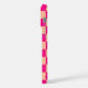 Capas de iphone de Monograma de cor rosa quente de pêssego quadrado verificado. Personalize com seu nome e inicial personalizados. Legal design de padrão quadrado geométrico verificado retroralmente. Pessegueira laranja clara do azulejo e verificador moderno rosa-quente.