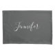 Mala de travesseiro do Monograma do Script Chic Branco da Cinza Moderna Minimalista Ambos os lados são modernos, projetados com uma cinza escura personalizada e personalizados com o nome em letras de escrita manual de tendências brancas. Clique na opção personalizar modelo e siga o prompt.