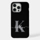 Este iPhone 15 Pro Max Case preto simples e elegante com o seu primeiro nome numa letra de script de tendência em branco escrito sobre a sua primeira letra inicial numa fonte moderna de boné na cinza pareceria fabuloso no seu telefone celular e irá protegê-lo contra quebras. É na moda e moda e, no entanto, muito clássico.