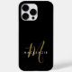 Capas de iphone de Monograma de Script Dourado Preto Moderno Elegante. Um monograma elegante de script dourado combinado com uma fonte branca de san-serif limpa faz uma aparência contemporânea.
