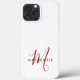 Capa de telefone de Monograma de Script Vermelho Branco Moderno Elegante Um monograma elegante de script vermelho combinado com uma fonte limpa de san-serif preta faz uma aparência contemporânea.