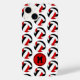 Esta capas de iphone temática divertida de voleibol apresenta um padrão simples de volichões que têm painéis vermelhos, pretos e brancos num fundo branco personalizável - personalizado com o monograma do atleta - por katz_d_zynes