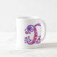 Monograma D caneca desenhada à mão. design a rabiscada, desenhada à mão, com corações e flores em tons roxos e rosados. © Arte e design de tipografia únicas por Sarah Trett. www.sarahtrett.com para www.mylittleeden.com no zazzle