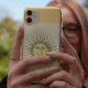 face solar celestial com fundo de bloco colorido geométrico e texto castanho dourado personalizável para monograma