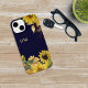 Um buquê de girassóis amarelos brilhantes e dourados combina-se com ouro pálido e folhas verdes para fazer um buquê espantoso nesta capa de telefone. As imagens são colocadas na parte inferior e superior direita. Seu nome ou monograma está em ouro.