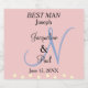 Dê ao Melhor Homem um presente especial elegante de casamento. Com o texto, Com amor de, insira os primeiros nomes da noiva e do noivo, data de casamento em texto negro. Monograma grande elegante em escrita azul-claro contra rosa cor-de-rosa pastel. Pequenas bolinhas de creme adoram o fundo. Design original de TamiraZDescartazes.