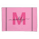 Menina Rosa Elegante Nome Monograma Pillowcase. Crie suas próprias bolsas monográficas femininas personalizadas, perfeitas para adicionar um toque divertido e feminino a qualquer quarto, dormitório ou sala de reuniões de irmandade. Este conjunto de na moda apresenta um fundo cor-de-rosa brilhante vibrante, uma inicial cor-de-rosa-quente ousada e um nome de script preto elegante para um design lúdico, mas sofisticado. Linhas duplas e elegantes em cada lado do monograma adicionam um acabamento polido e moderno. Totalmente personalizável, você pode ajustar as cores para corresponder ao seu estilo ou decoração. Estas monografias fazem um presente pensativo para aniversários, exércitos domésticos, ou qualquer ocasião especial, combinando encanto e praticidade para elevar qualquer espaço.