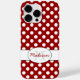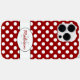 Bolinhas brancas vermelhas Padrão Monograma capas de iphone Maiúscula. Personalize os acessórios do telefone com seu nome e nome iniciais. Padrão retrorreflector Legal adorável com pontos brancos e fundo vermelho escuro personalizado.