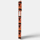 Esta capas de iphone apresenta um elegante e na moda dourado com um padrão uniforme em fundo preto com ventilador geométrico de deco de arte tropical alaranjado em forma de abstrato, com texto personalizado para colocar suas próprias iniciais ou monograma. Perfeito para mulheres e raparigas, ou alguém especial, qualquer ideia de presente feminino ocasional e de férias que goste de um padrão de fãs colorida de borda escalada tropical.