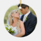 Os primeiros enfeites de natal do casal bonito, simples com a foto na parte dianteira e a inicial do monograma na parte traseira. Elke Clarke©. Para newlyweds e pais recentemente de casais como uma lembrança de seu dia do casamento. Os flocos de neve brancos e e a banda opaca junto com sua foto do casamento compo este design à moda. Para mais opções de edição, incluindo fazendo seu ajustado da foto e mudando as cores do fundo seletas "personalize-o" para o menu da edição.