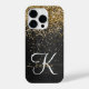 Personalize facilmente esta elegante design de capa de telefone de de tendências que apresenta brilho bonito dourado brilhante num fundo metálico escovado preto.
