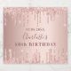 Para uma festa de aniversário de 40ª (ou qualquer idade) entre cinzas e glamourosos. Um fundo metálico de rosa dourado falso com aspecto rosa dourado, pingos cor-de-rosa, aparência de pingar. Personalize e adicione uma data, nome e idade 40. O nome é escrito em ouro rosa escuro com um grande estilo escrito à mão moderno.