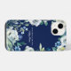 Mala floral, azul-marinho e branco, monograma floral iPhone 14 para uma mulher moderna que ama lindas flores de aquarela. Um elegante spray botânico de folhas verdes se desdobra em torno de seu nome e título de carreira.