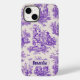 Capas de iphone de monograma elegante do toile de jouy roxo. Belo padrão perfeito de jouy Azul em fundo branco.impressões de Toile são uma fúria constante no momento, este é um elegante e ornamentado toile de jouy com cor damasco exótica, um estilo divertido que atualmente está se tornando atraente para decoração doméstica, roupas, móveis e Capas de ipad, convites e muito mais. O design é clássico e eterno com uma cor espantosa. Você pode alterar todas as cores e fontes do texto, clicar para personalizar ainda mais abaixo da área de personalização do texto que o levará à ferramenta design. Um presente feminino único para aniversário, feriados e qualquer ocasião especial. Seja para dia de os namorados, Natal ou como um presente em geral, faz uma ideia de presente excelente