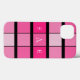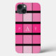 Caso do iPhone 13. Quadrados Geométricos Pretos e Rosa. Monograma.