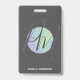 Tendência profissional e ilustração do monograma da caligrafia moderna com um círculo holográfico do arco-íris sobre uma simples cinza.