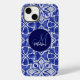 Capas de iphone inicial de monograma azul elegante. Este design azul apresenta seu monograma inicial e sobrenome em cinza clara, a tipografia moderna impressa em um plano de fundo de cinza azul geométrico com padrão. Este design elegante da moda é perfeito para o seu quarto, sala de família ou sala de estar. Personalize este travesseiro na moda com o monograma inicial e sobrenome da sua família para criar o seu travesseiro decorativo personalizado. Você pode alterar todas as cores e fontes do texto, clicar para personalizar ainda mais abaixo da área de personalização do texto que o levará à ferramenta design. Um presente único para aniversário, feriados e qualquer ocasião especial. Seja para dia de os namorados, Natal ou como um presente em geral, faz uma ideia de presente excelente