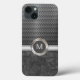 Capa de smartphone com monograma para homens de negócios com fundo metálico prateado que tem um visual industrial e arruivado, tudo impresso digitalmente na capa. Inclui emblema de monograma que você pode personalizar e tornar seu, substituindo a inicial do nome do monograma pela sua. Uma capa tão única quanto você, projetada para uso profissional ou pessoal.