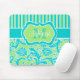 Estas listras monogrammed modernas do azul de turquesa, do verde, e as brancas com mousepad floral da cor damasco têm as caixas do modelo para você personalizar com seu próprio nome, iniciais, monograma, ou o outro texto. Se você precisa alguma ajuda que personaliza este mousepad na moda, envie por correio electrónico por favor niteowlstudio@gmail.com.