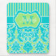 Estas listras monogrammed modernas do azul de turquesa, do verde, e as brancas com mousepad da cor damasco têm as caixas do modelo para você personalizar com seu próprio nome, iniciais, monograma, ou o outro texto. Se você precisa alguma ajuda que personaliza este mousepad na moda, envie por correio electrónico por favor niteowlstudio@gmail.com.