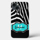 O padrão listrado de impressão em zebra azul-branca e preto-e-azul-aqua monogramas Case-Mate Baely (Caixa de ar iPad) pode ser personalizado com seu logotipo, nome, iniciais ou outro texto. Se precisar de assistência, envie um email para niteowlstudio@gmail.com.