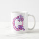 O monograma Q desenhado à mão em forma decorativa, na caneca cor-de-rosa e roxa. design de rabiscada desenhada à mão bonito, com corações e flores. © Arte e design de tipografia únicas por Sarah Trett. www.sarahtrett.com para www.mylittleeden.com no zazzle
