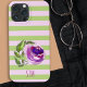 Esta design de capa de telefone cônica apresenta faixas horizontais lilás e pastel verde com rosa de cor d'água roxa e verde. O texto modelo permite um nome ou iniciais. Personalize o texto, remova-o ou clique em personalizar para selecionar um estilo de tipo, tamanho ou cor que você quiser. Uma doce ideia de presente para muitas ocasiões.