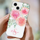 Esta capas de iphone bonito é decorada com uma buquê de aquarela de rosas e folhagem em tons de rosa, coral e verde. Facilmente personalizável com seu monograma e nome. Original Watercolor © Michele Davies.