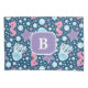 A caixa bonito do travesseiro para você caçoa, com um monograma roxo sobre um teste padrão de medusa, de estrela do mar, e de cavalos marinhos dos desenhos animados.