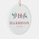 O seu início rodeado por ramos festivos juntamente com o sobrenome e o ano ou a data do casamento. Com uma foto no verso, este ornamento de feriado é perfeito para o novo casal. O esquema de cores é um clássico Natal vermelho e verde.