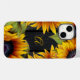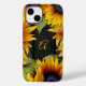 Elegante na moda rustic country girly chic grandes girassóis enquadram a capa de telefone com um monograma de caligrafia com script / seu nome inicial sobre um fundo de madeira marrom-escura.