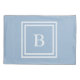 Esta pasta azul para bebê tem um monograma branco no centro. Dois quadrados brancos são bordas ao redor da carta branca. Pode editar a carta para mostrar o monograma correto.