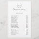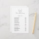 Folha de papel clássico de lista de preços em preto e branco com um layout simples com seu dentro monograma de uma coroa / crista. Abaixo está seu nome em um script/caligrafia elegante junto com sua lista de preços/menu de serviço. A parte traseira tem suas horas de operação, suas informações de contato, código QR, ícones de mídia social e seu identificador de mídia social. Uma design feminina e feminina para qualquer tipo de negócio.